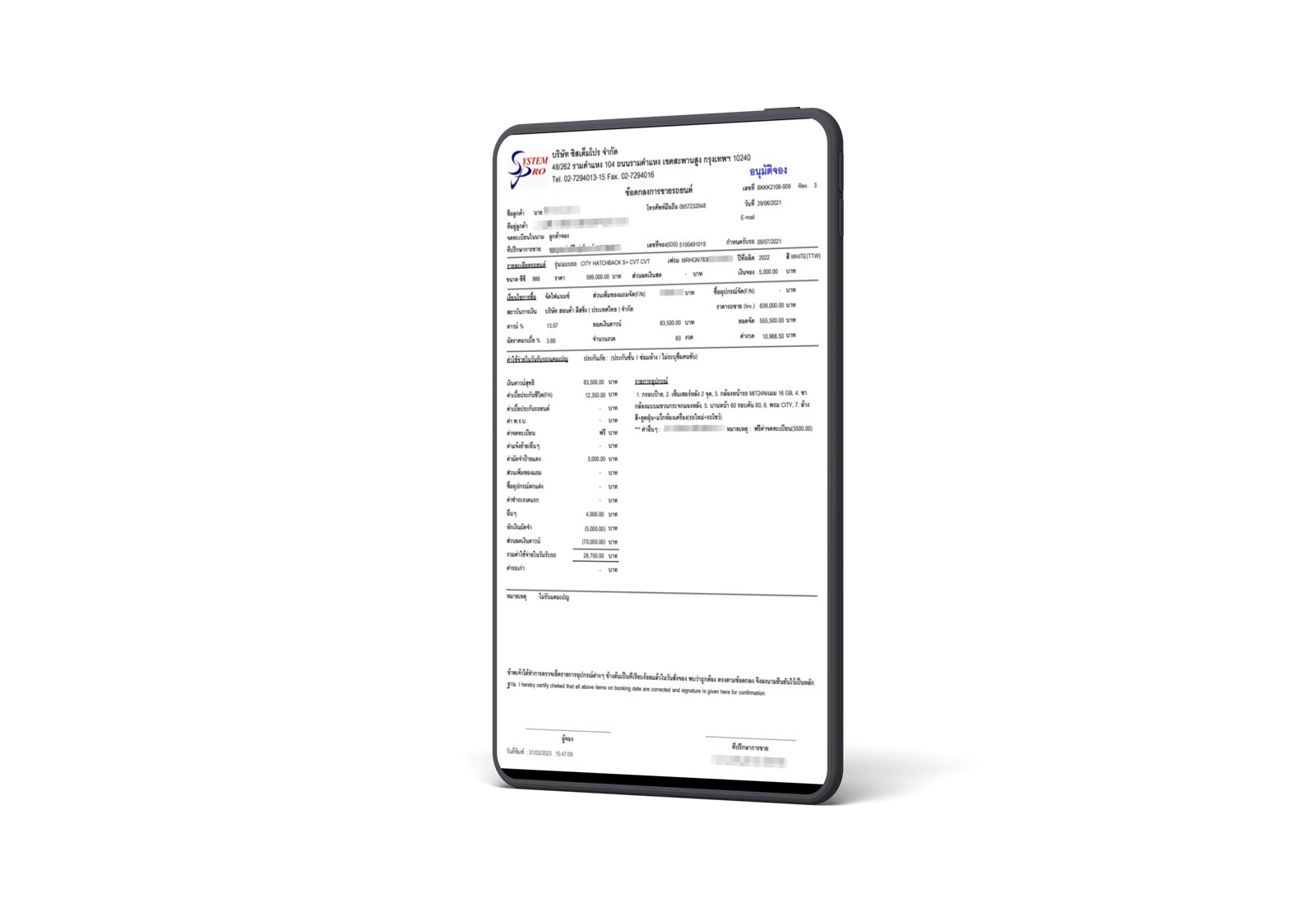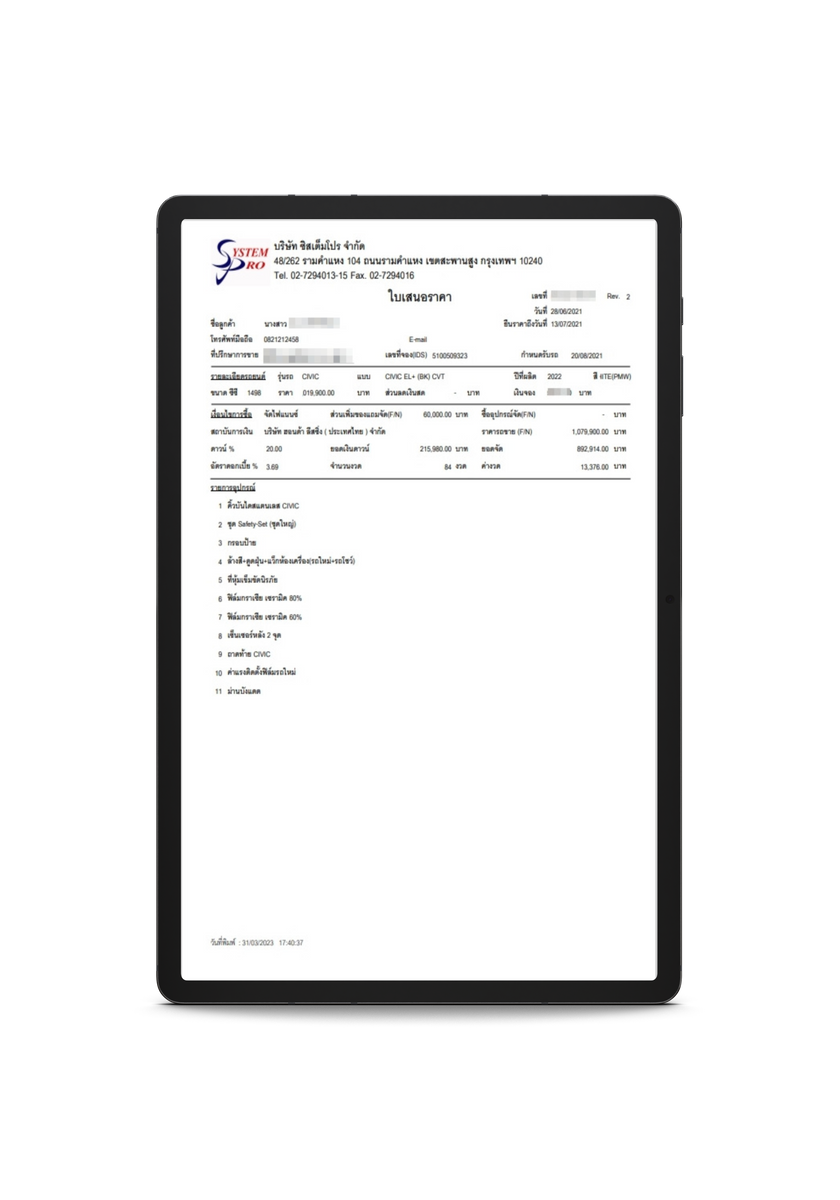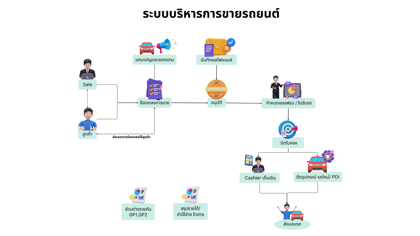 สามารถจัดการกับกระบวนการขายรถยนต์ ได้อย่างมีประสิทธิภาพและเป็นระบบตลอดกระบวนการ การเสนอราคา และการบันทึกการขาย โดยใช้ฐานข้อมูลเพื่อเก็บข้อมูลลูกค้า การติดตามการขาย การวิเคราะห์และรายงานผลการขาย เพื่อช่วยให้การจัดการและการตัดสินใจทางธุรกิจ เป็นไปอย่างมีประสิทธิภาพและถูกต้อง